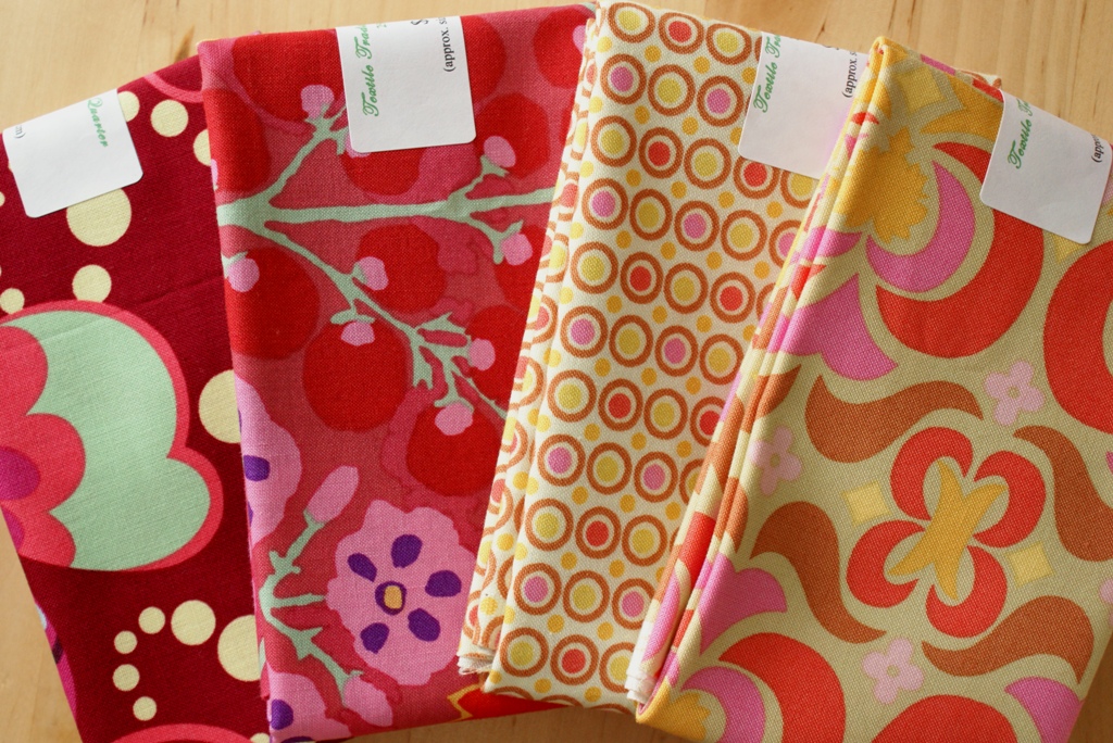 The find of the day was some beautiful Amy Butler fabric that I’d been ogling over on the internet. There was more than enough to choose from and I had to keep my purchases down to a dull roar so in the end I picked up some fat quarters to whet my appetite. But now that I know where that little shop lives I’ll be back. Here is a sampling of my meager purchase of the day. Now, what to do with it? Any ideas?