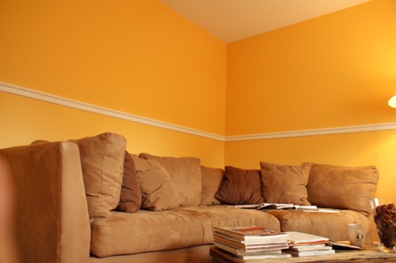 Wow, I just realized it’s been almost two weeks since a post. It has been hectic. First the painting had to be finished (that was a longer job than I planned!), then Thanksgiving came and went – it was good to have family and friends around the table, after that the customary “the-big-day-is-done-so-my-body-can-let-down-it’s-guard-and-get-sick” time ensued, and finally I had to do a project to show off. (Just between us we won’t tell my husband that I’ve been calling this the “Sewing Room”. He thinks it’s called “The Lounge”. What he doesn’t know won’t hurt him, right?) The paint colour is called “Bonjour” from C2.