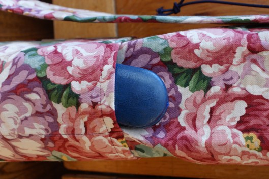 I used a piece of fabric from my stash so that kept the cost down nicely. The original bag is open at the top but my daughter wanted to have a drawstring close to keep the weather out so I modified the pattern slightly by adding a little extra fabric at the top. The sewing got a bit thick at times with the upholstery weight fabric, the heavy interfacing and all the folds in places like the bag handle but I went very slowly at times and managed to not break any needles!